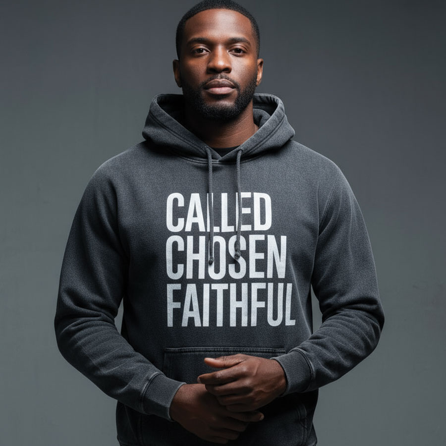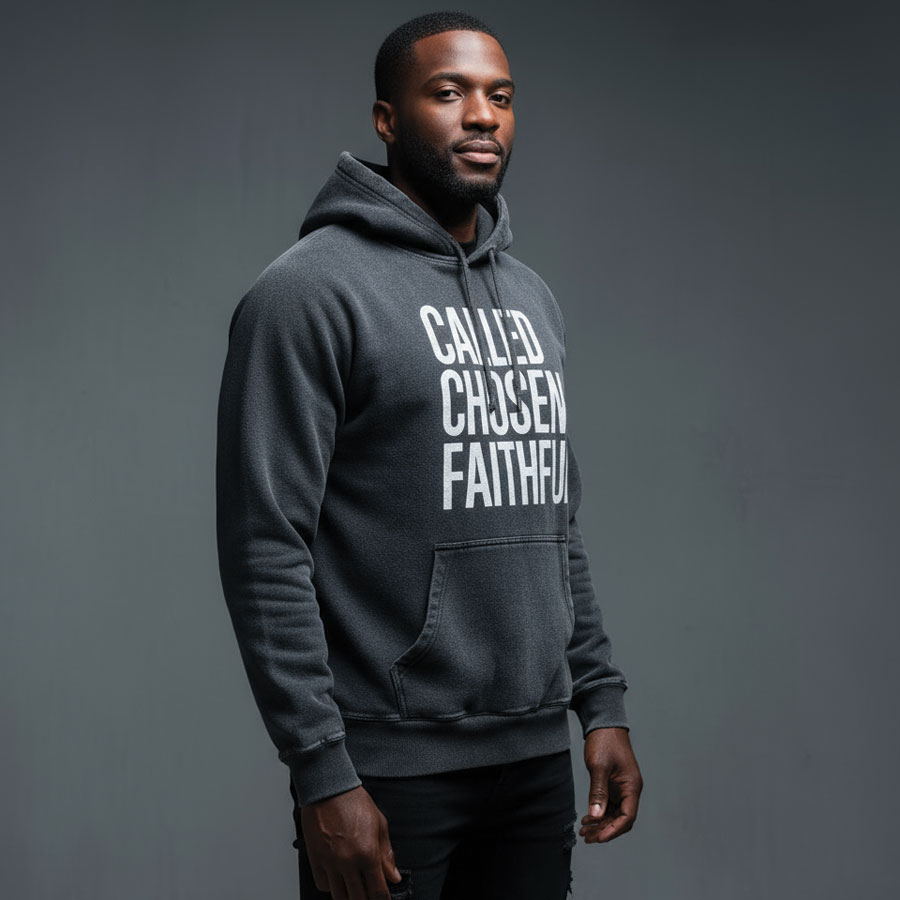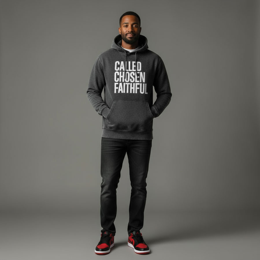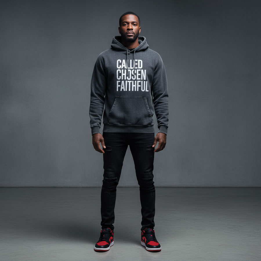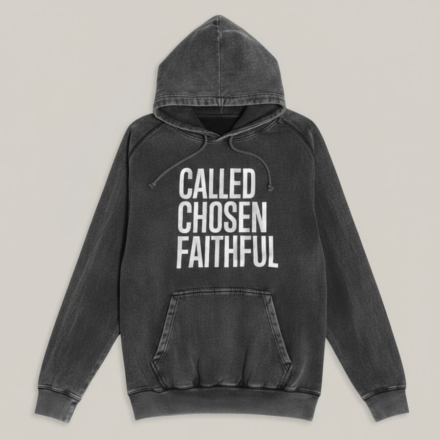 Stay comfortable and inspired with our “Called, Chosen, Faithful” hoodie. Crafted from 100% cotton and mineral washed for a vintage look and feel, this soft, durable hoodie is perfect for everyday wear. Inspired by Revelation 17:14, it’s a timeless reminder of your faith and commitment to standing firm in Christ.